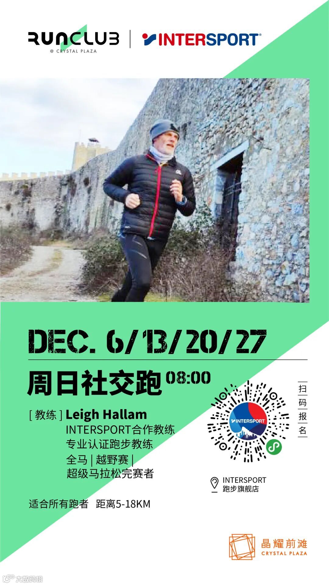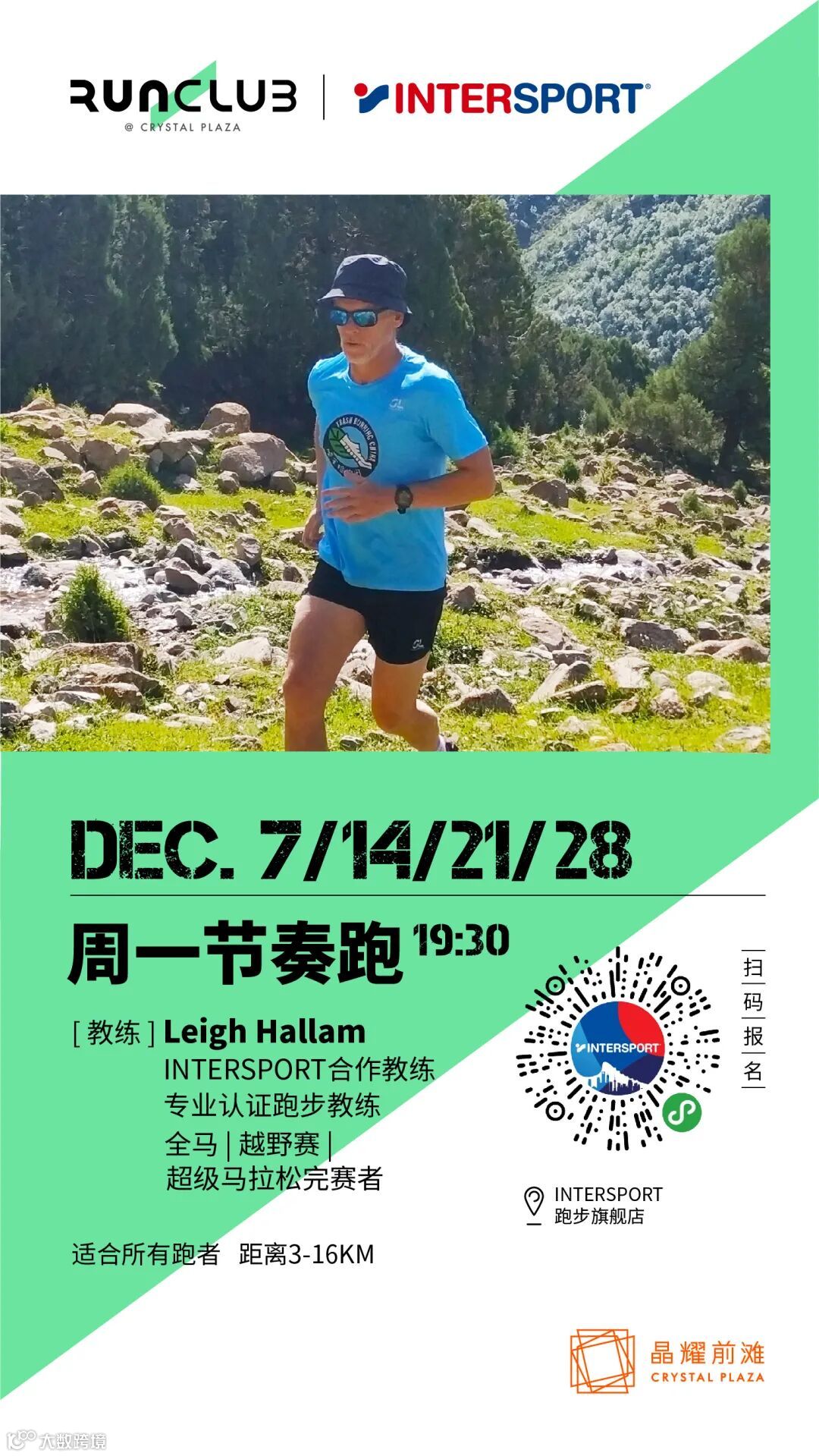 周一节奏跑,周三轻松跑,周日社交跑