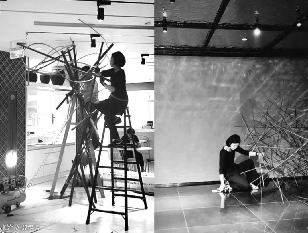 小组成员依次攀爬位于晶耀户外的大楼梯,