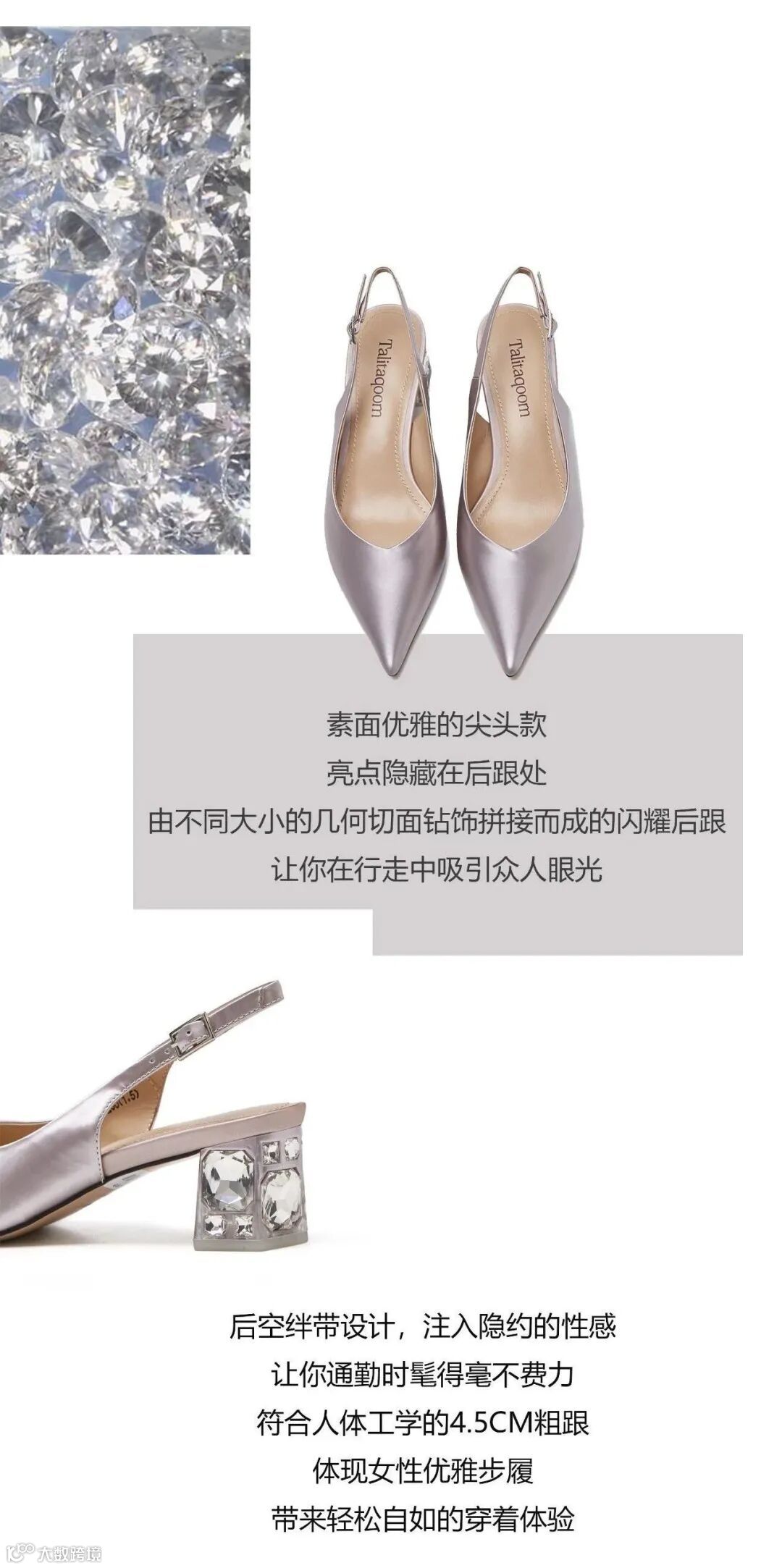 搭配闪耀的几何钻饰后跟