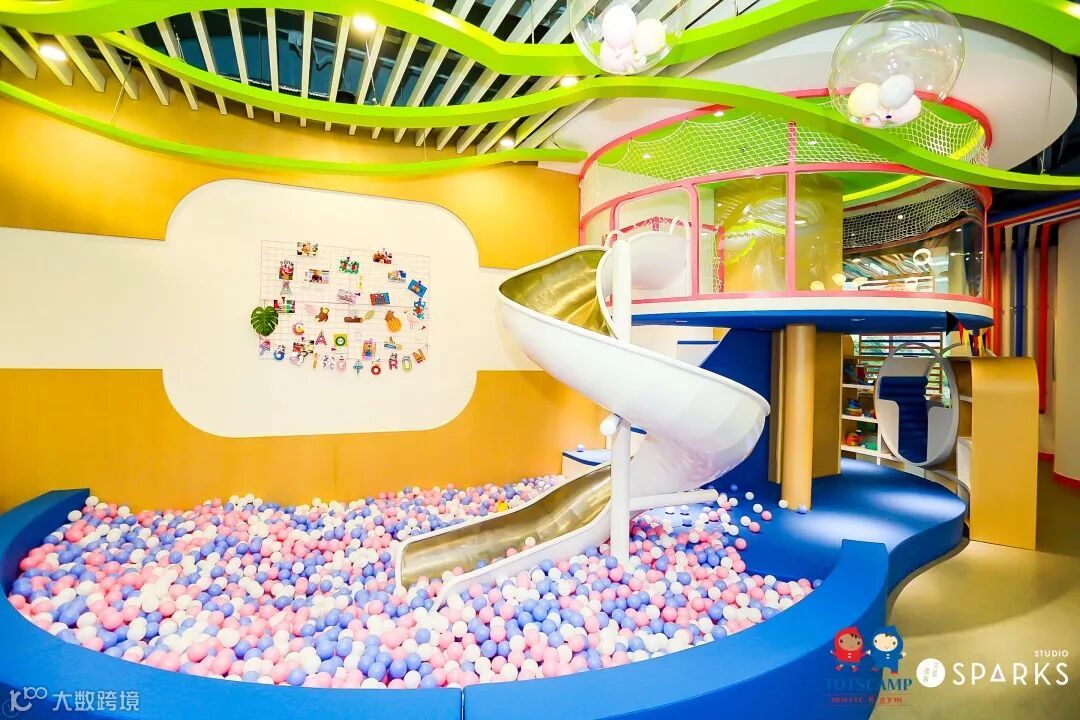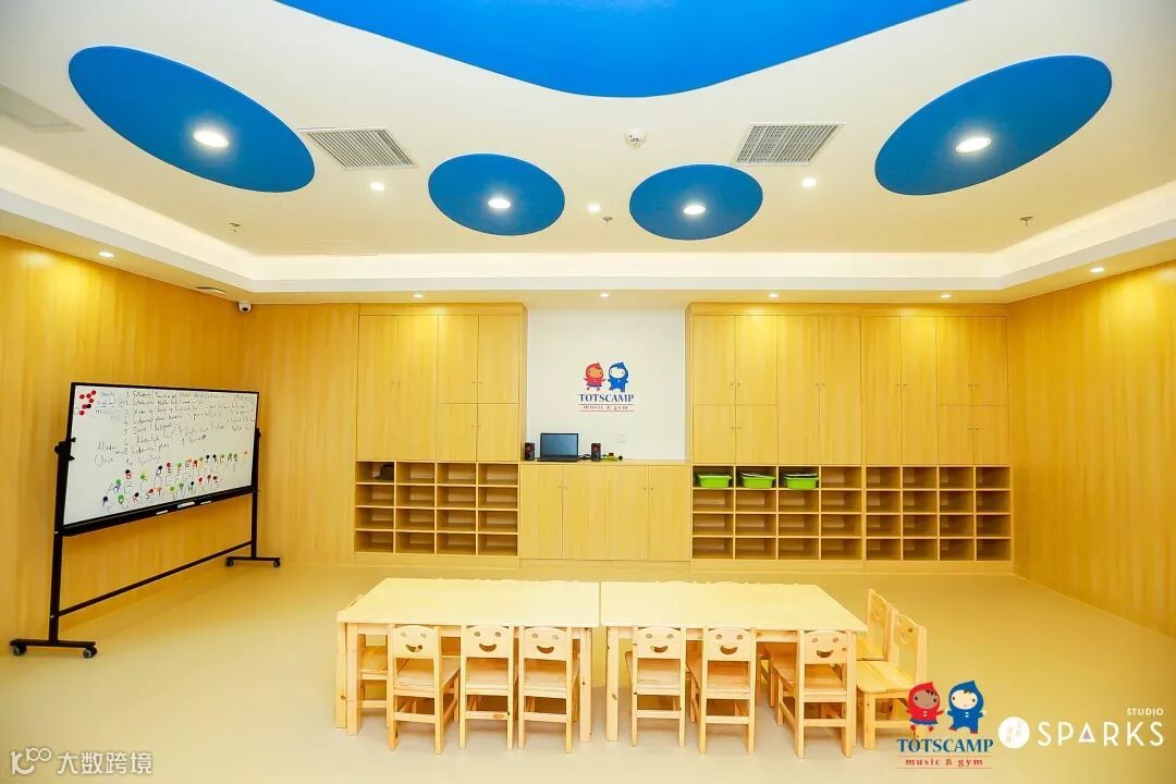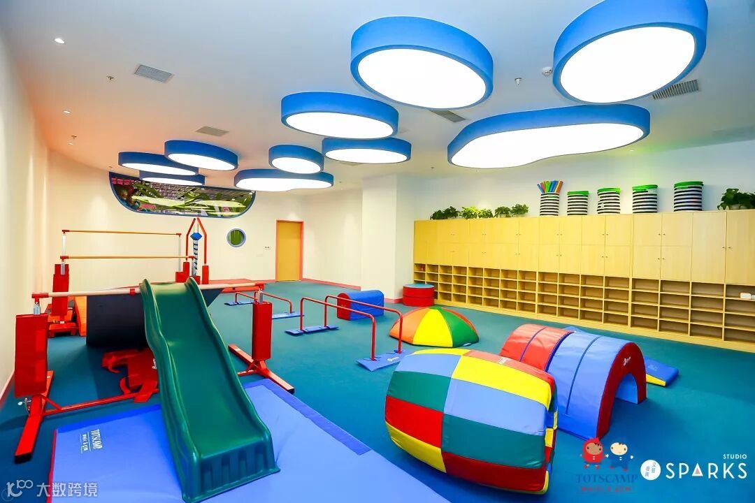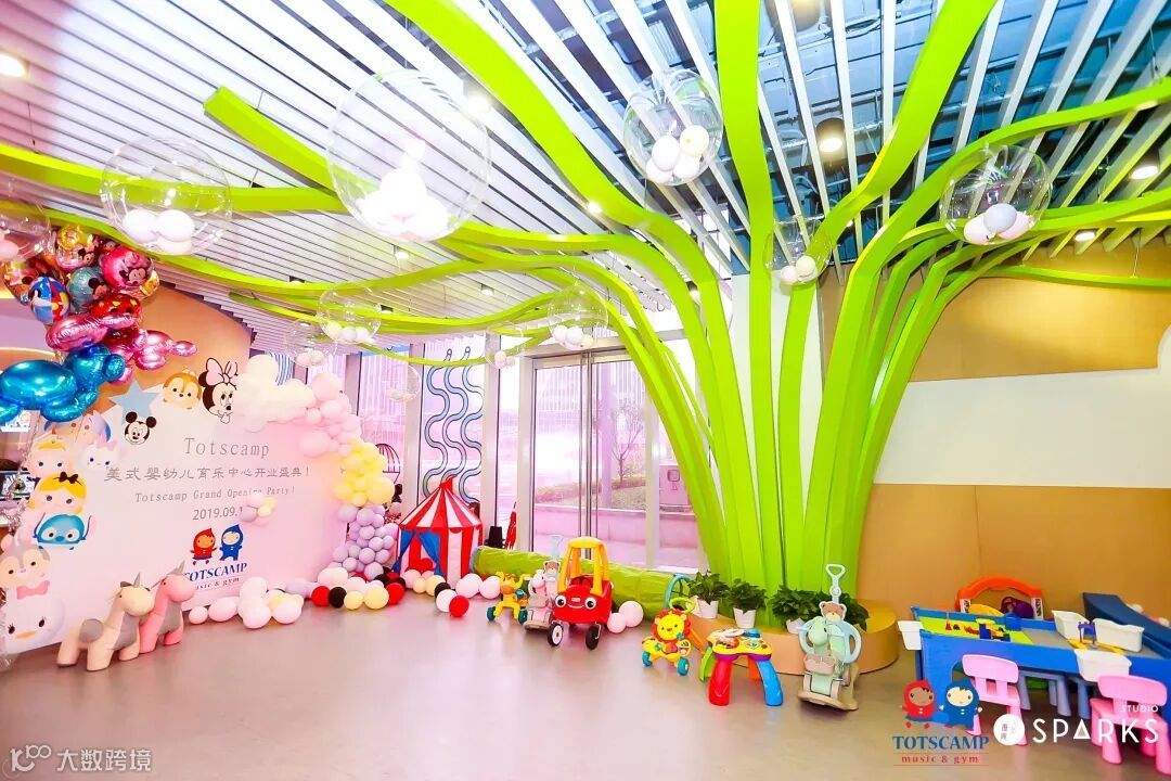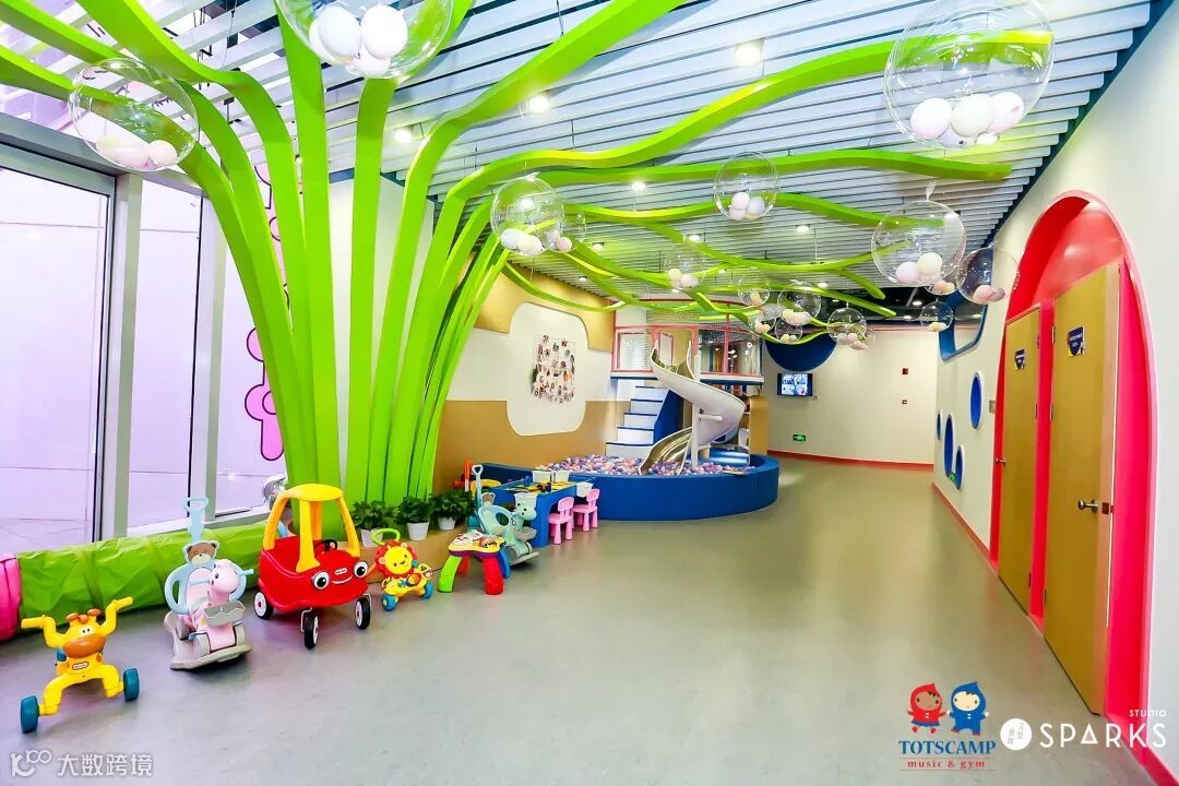 TOTSCAMP前滩店打破了早教一贯的小教室上课,1000坪的大场地划分成两个130坪的大教室,3个小教室,休息区,阅读区,玩乐区,儿童卫生间及母婴室。