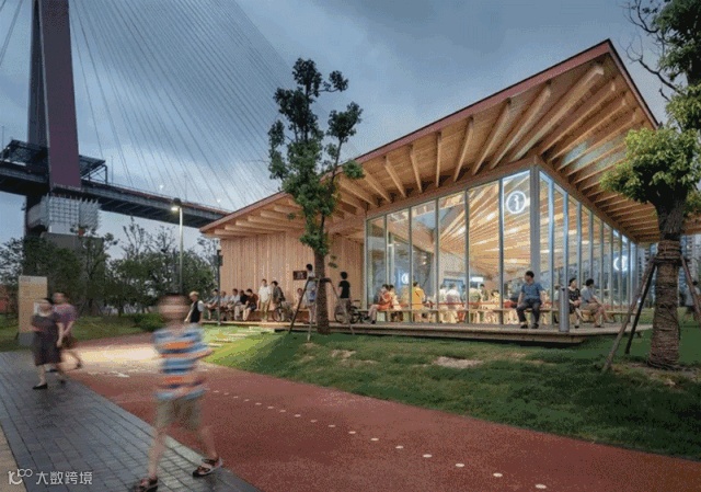 在晶耀前滩的户外,还有网红阶梯可以稍作休息。一杯咖啡、一份新出炉的面包,释放一下工作紧张的情绪。