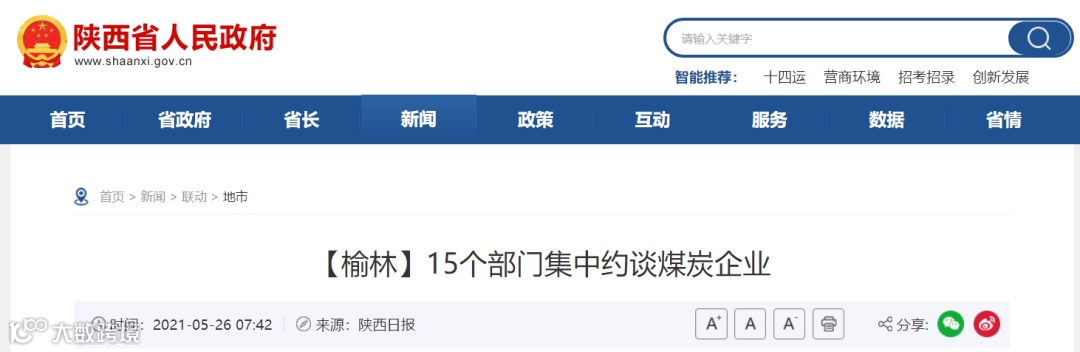 据悉5月19日,榆林市市场监管局、市发改委、市能源局等15部门联合召开煤炭市场保供稳价安全生产约谈会,集中约谈神东煤炭公司、延长石油矿业公司、陕煤榆林销售公司等58家在榆煤炭企业负责人。