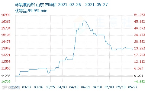 环氧氯丙烷上下游均大幅下降,场内交投气氛寡淡,丙烯、双酚A等上游下调,环氧氯丙烷市场价格单日下跌150-300元/吨,自4月26日-5月26日,环氧氯丙烷累计下跌1800元/吨,预计短期内环氧氯丙烷仍以下跌为主。