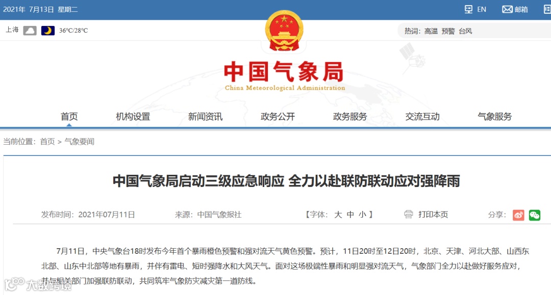据悉目前天津、河北、山西、山东、黑吉辽等多地受到暴雨影响较为明显,内涝、塌方、库房进水等情况屡见不鲜,安徽合肥、江苏兴化等多地也发布了红色预警,气象台提醒大家加强防范。当地采取了限运、停工、路段封闭等措施来应对暴雨及此生灾害。