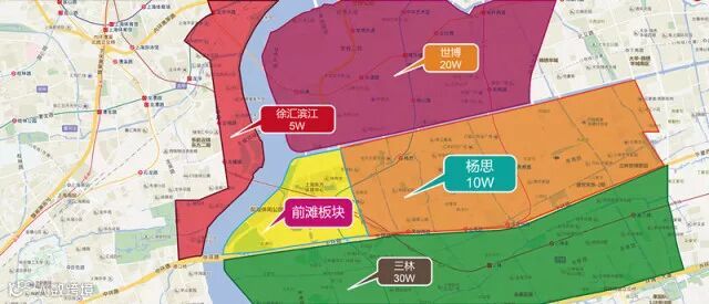 纵观前滩左邻右舍,上至世博,下至三林,左临徐汇滨江,右靠杨思,周边3km常住人口已经超60多万人,相当于上海火车站每日春运人流量的2.5倍,想必刚参加春运大迁徙的朋友会更有感受。