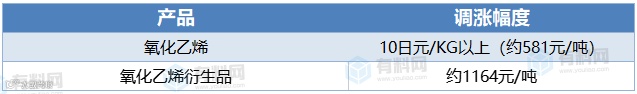 三菱化学株式会社7月1日起对于氧化乙烯及衍生品进行涨价。涨幅如下: