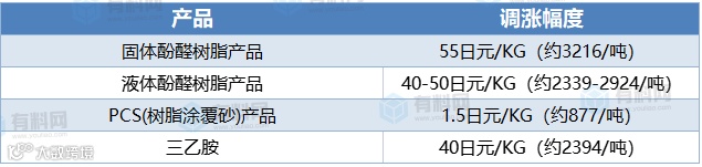 旭有机材株式会社7月1日起调涨酚醛树脂产品价格,涨幅如下: