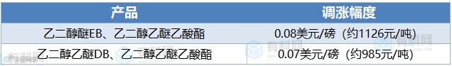 利安德巴塞尔宣布自7月1日或合同允许时间起,将提高以下乙二醇醚的价格,涨幅如下: