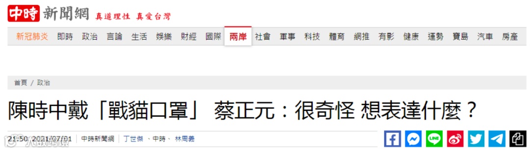 对于陈时中、萧美琴等人先后戴上“战猫”口罩的行为,岛内不少人看不下去了。