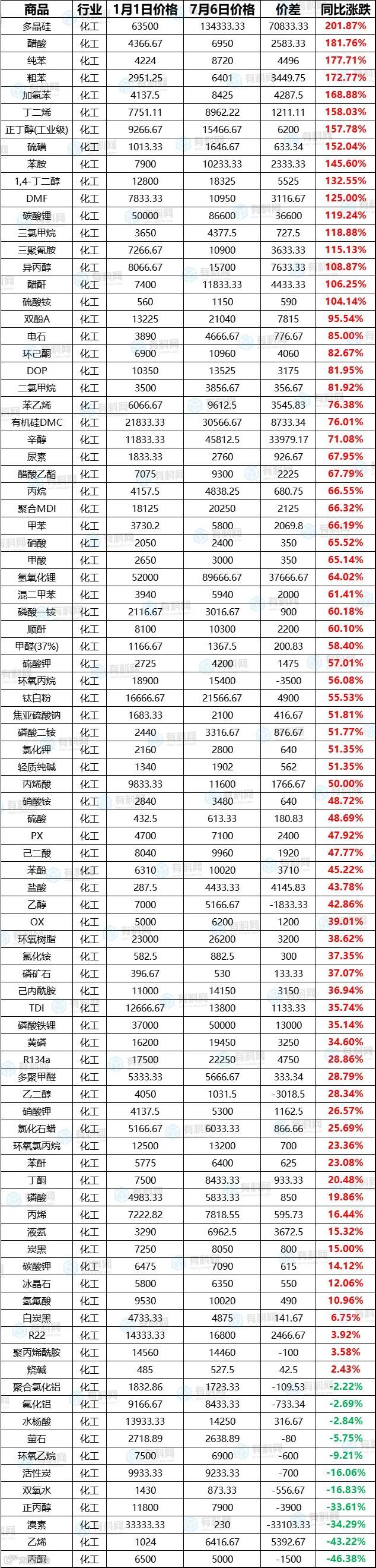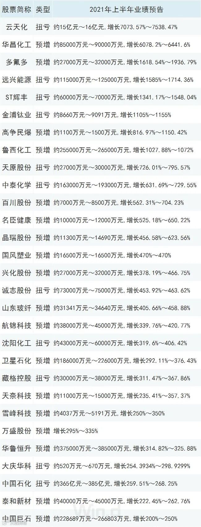 部分内容参考:化工行业各半年业绩预告公告、wind数据、生意社等,由有料网整理发布,转载请注明出处,如未经许可或未注明出处,将追究法律责任。