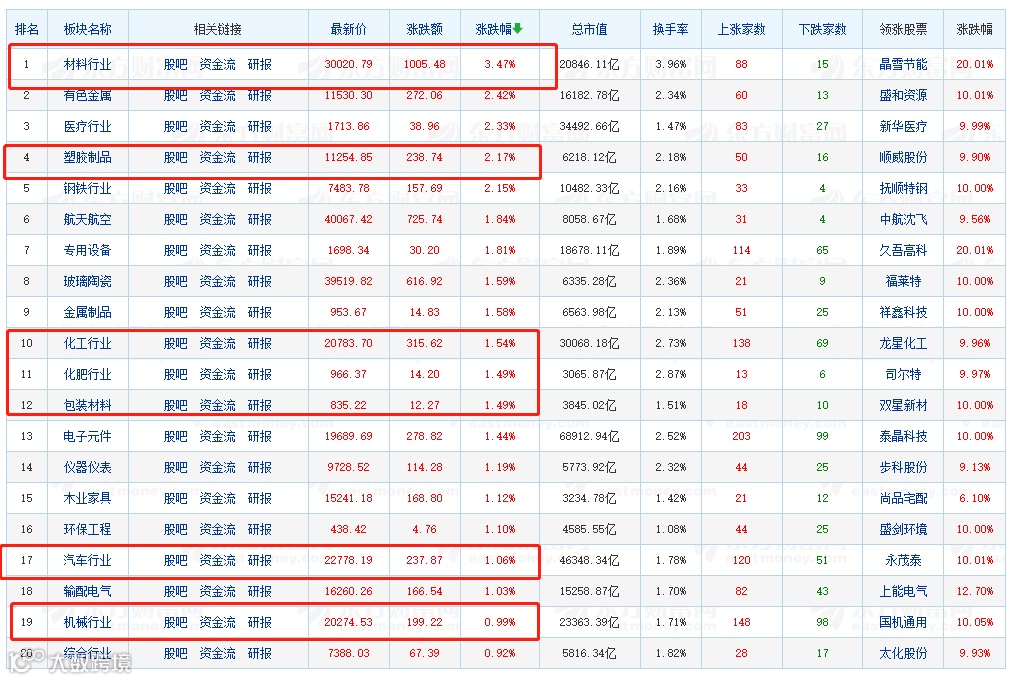 在A股震荡低迷的阶段,化工板块仍旧十分活跃,化工相关的材料行业、塑料物品、化肥行业、包装材料等继续领涨A股。