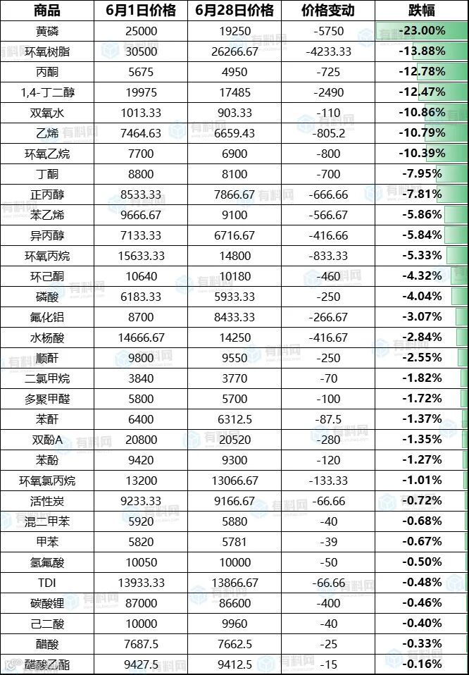 28日,黄磷报价19250元/吨,较月初下调5750元/吨,跌幅23.00%。