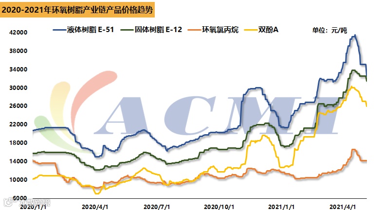 而受下游需求抑制影响,环氧树脂正处于无量空跌状态,且表现在固体环氧树脂更为明显。据悉,去年下半年,疫情有效控制后下游需求好转,特别是风电行业对液态树脂消耗量巨大,带动上游原料涨价,间接造成固体环氧树脂同步涨价。