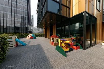 当然,你不要以为嘉宝前滩幼儿园只有室内活动空间,三层式的楼栋设计,硬是被挤出了超多的室外游乐空间!
