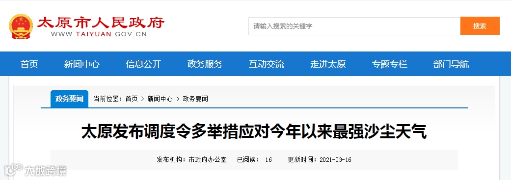3月15日,我国北方多地遭遇今年以来最强沙尘天气,这也是我市今年遇到的范围最大、强度最强的一次沙尘天气。对此,太原市改善省城环境质量领导小组办公室发布秋冬季大气污染防治第74号调度令,要求各有关部门、各县(市、区)政府采取有效措施,严格管控三类污染源。