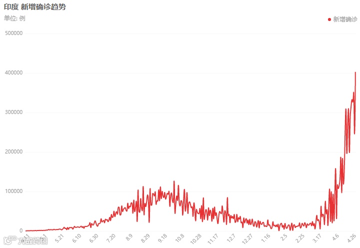 印度政府26日表示,预计这一波新冠疫情可能将于5月中旬达到峰值,届时印度每天新增确诊病例可能将高达50万例。