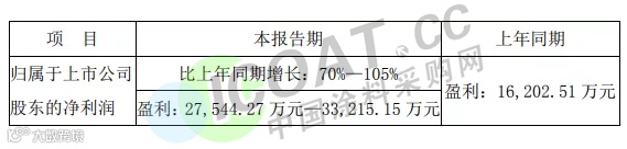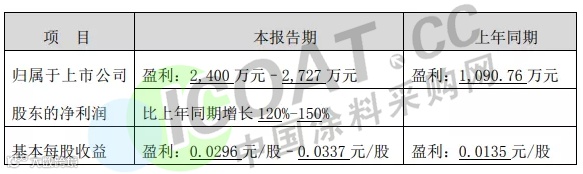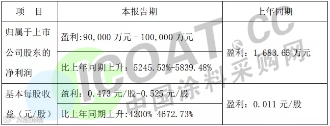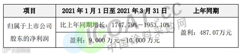 中核钛白2021年一季度预计实现归属于上市公司股东的净利润2.75亿元至3.32亿元,同比增长70%至105%。