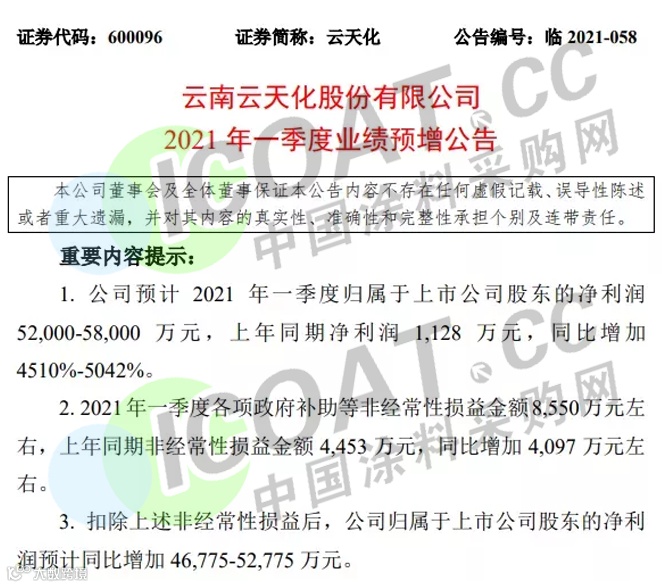 随着2021年二季度拉开序幕,万华化学、鲁西化工、云天化等众多化工上市公司公布了一季度报告和财务数据等。众多原材料企业业绩亮眼,营收、净利润等较同期出现了大幅度的上涨,净利润预增最高超过7100%。