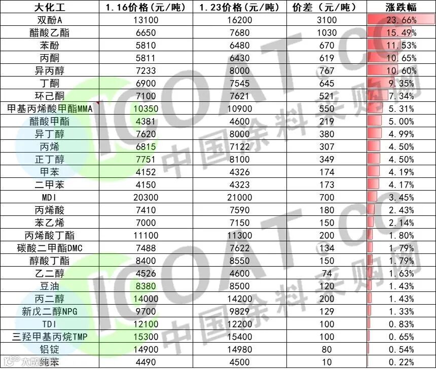 ABS/宁波LG甬兴/12H领涨800元/吨、HIPS/台湾台化/8250单日上涨600元/吨,PC也有500元/吨的调涨!ABS华南地区最高周涨1778元/吨,PS普通级改苯最高周涨572元/吨,PVC电石法小涨,PP粉料周涨475元/吨,LDPE周涨198元/吨!