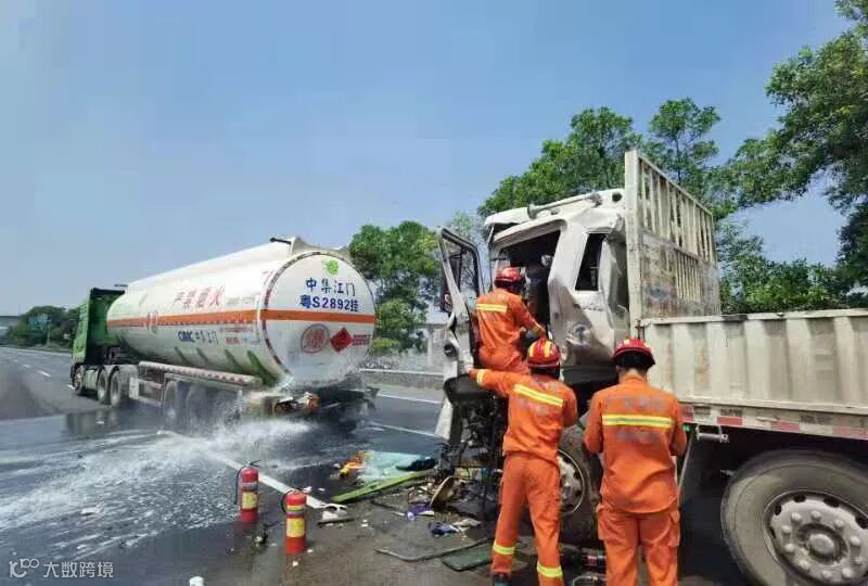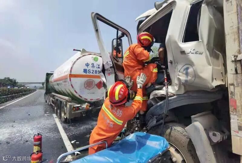 广东惠州高速上3车追尾,30吨化工危化品泄漏!