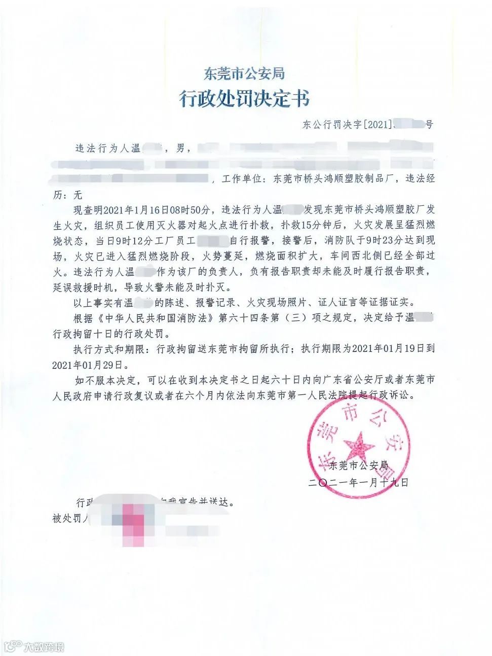 现场火势于11时得到控制,所幸无人员伤亡,但厂区被大火烧成废墟。经调查,火灾之所以造成如此严重后果,其主要原因是报警不及时!错过最佳灭火时机!工厂负责人不及时报警的行为,被公安机关处以10日行政拘留处罚。