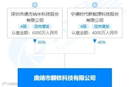 据了解,曲靖市麟铁科技有限公司股东为宁德时代与德方纳米合资设立,双方分别持股40%和60%。