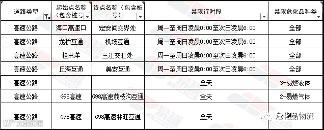 海南省高速限行路线信息: