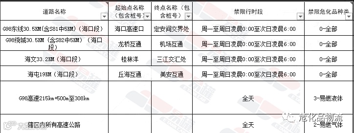 海南省高速限行区域信息: