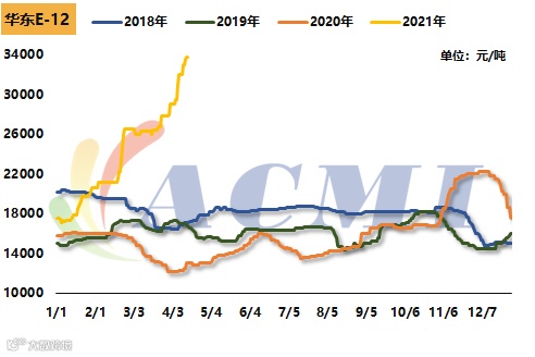 丙烯酸:19日,万华化学丙烯酸华北区域报价10400元/吨,较年初报价8000元/吨上调2400元/吨,涨幅30%;华东区域报价10500元/吨,较年初报价8100元/吨上调2400元/吨,涨幅29.63%。
