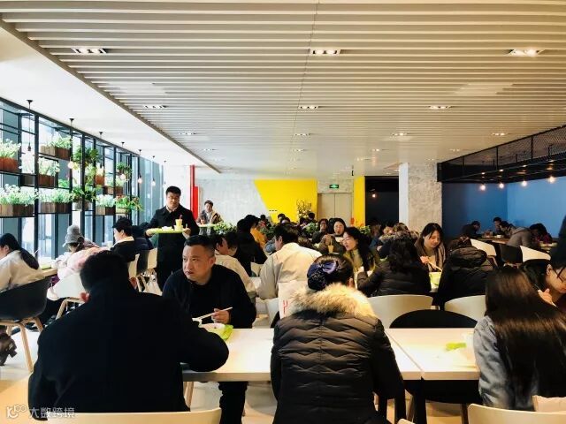 恰逢就餐高峰期,白领食堂里的人很多,排起了大长龙。