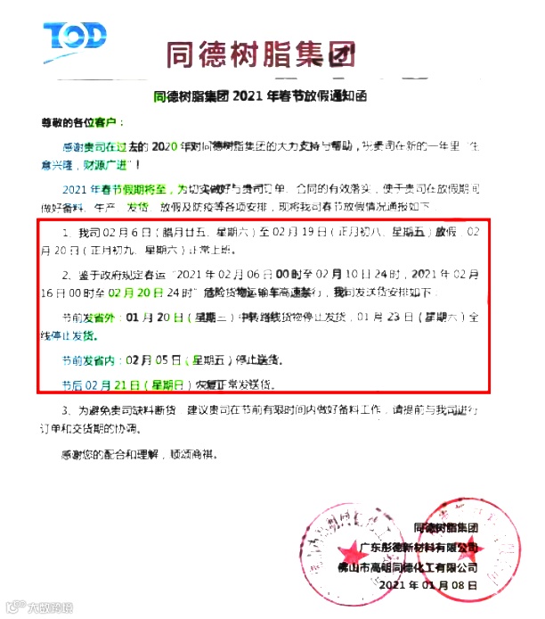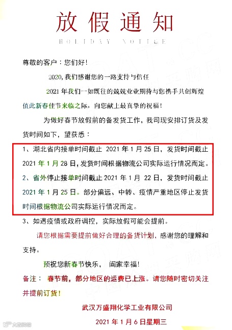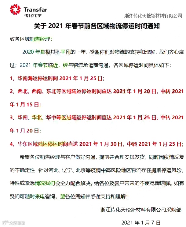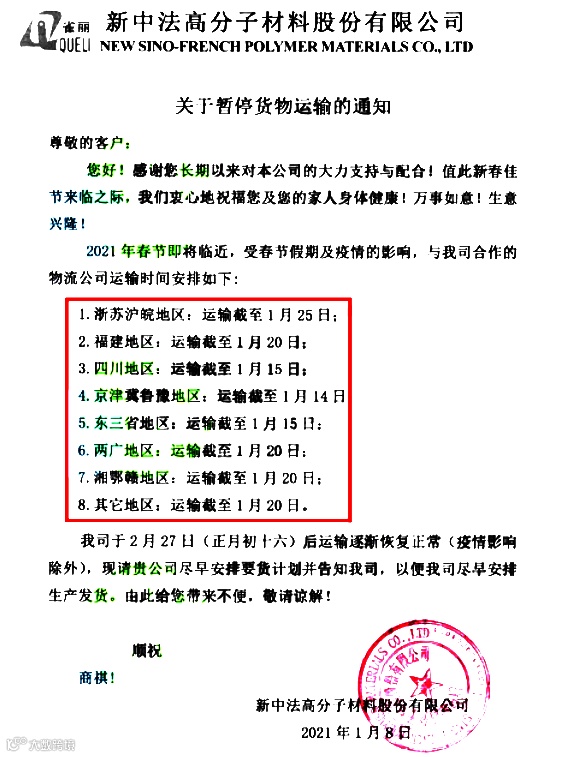 部分化企提前放假!货运物流提前停运!