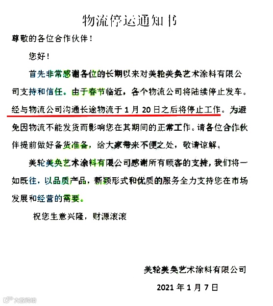 另外,因疫情、寒潮导致的物流局部中断,还请各商家按需提前备货。