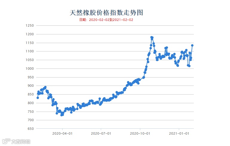 受台风、降雨等极端天气和橡胶树病虫害等因素影响,东南亚地区出现橡胶减产的情况,天然橡胶生产国联合会(ANRPC)预计2020年全球天然橡胶产量约为1260万吨,同比下降9%,由此推动了橡胶价格的上涨。