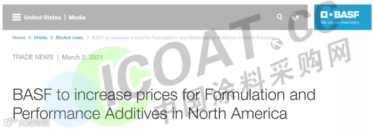 巴斯夫:自2021年4月1日起,将提高北美配方和性能添加剂的价格。