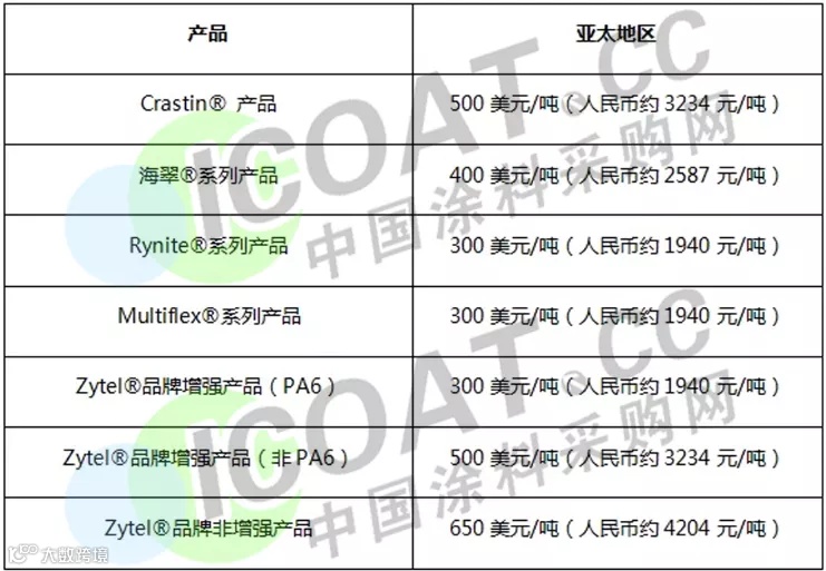 杜邦:从2021年4月1日起,或在合同允许的条件下,杜邦交通和材料公司将在全球范围内调涨部分产品的价格,Zytel®品牌产品调涨最高650美元/吨(折合人民币4205元/吨)。