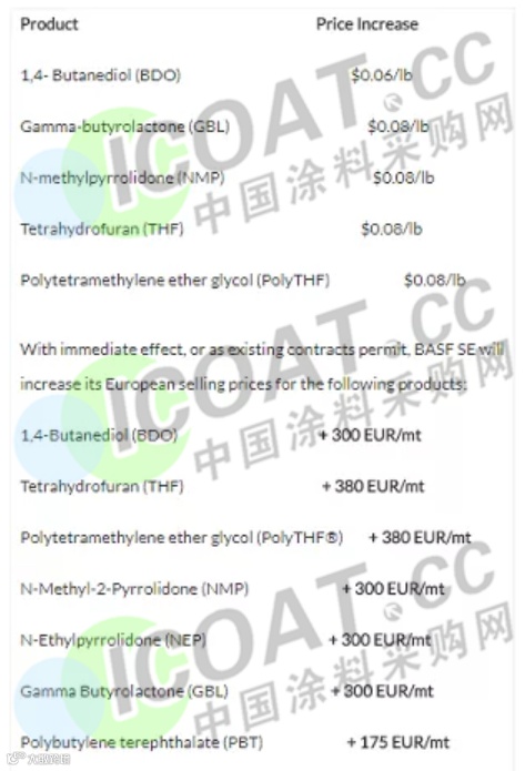 巴斯夫宣布从2021年1月1日开始,或者在现有合同允许的情况下,将提高北美1,4-丁二醇(BDO)及其衍生物的价格。