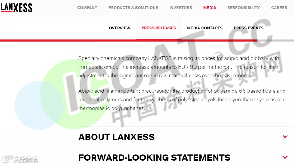 自2021年1月1日或合同允许时间起,利安德化学公司将上调1,4丁二醇(BDO)及其衍生品的价格: