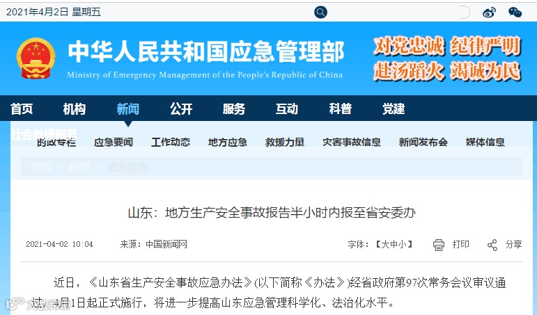 ▶▶▶山东省:4月1日起,事故必须半小时内上报!