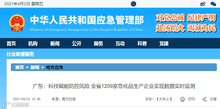 ▶▶▶广东省:全省1209家危化企业实时监控!