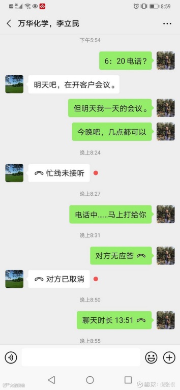 大事件!!!周末,梦百合董事长倪张根在雪球发帖,针对两家公司持续3年的1800万诉讼案件,贴出聊天记录“炮轰”万华化学CFO李立民。