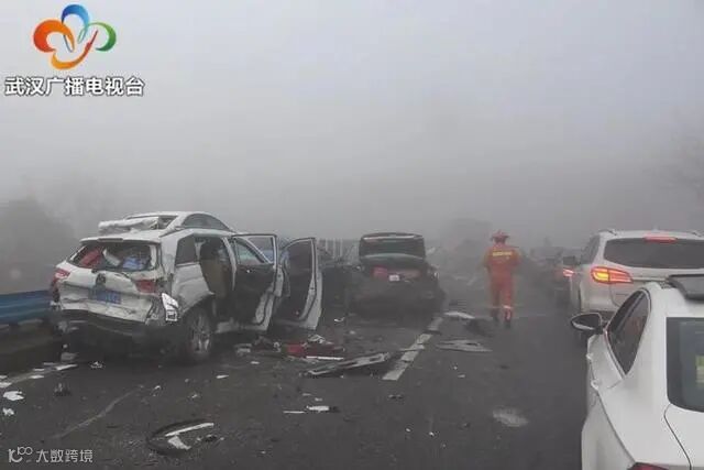 春运首日,湖北高速发生连环车祸!据武汉广播电视台报道,1月28日8:00,沪渝高速因大雾能见度不足10米,造成20多辆车连环追尾相撞,场面一度混乱。
