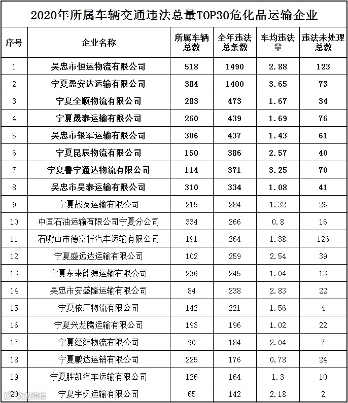 ▶▶▶宁夏:曝光违法危化运输企业20家!