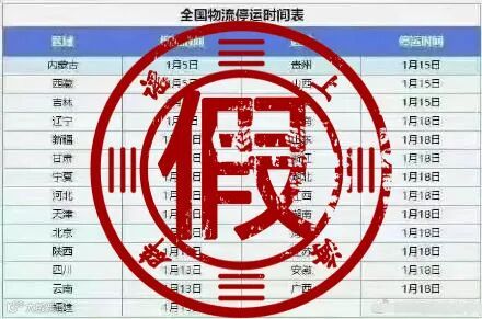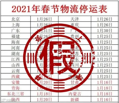 2021年春节假期是从2月11日至2月17日,怎么早在1月份物流就停运了?网传表格可靠吗?