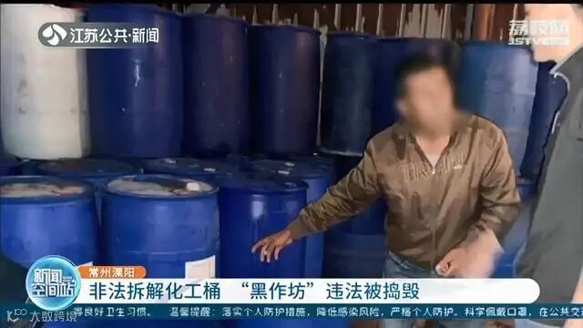 常州溧阳市公安局竹箦派出所副所长蒋雪洪介绍,在这个作坊里,有些程度比较新的化工桶还会被转卖;有些比较破旧的桶就被切割后,作为碎片卖给塑料粒子厂。