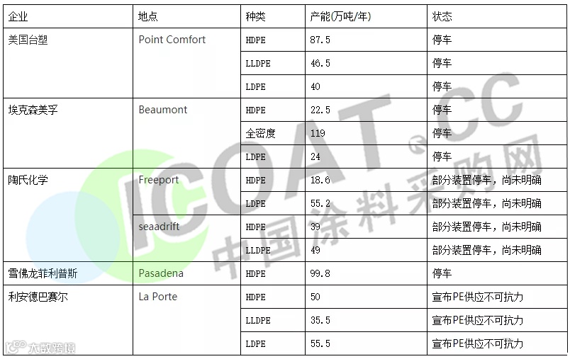 台塑美国:关停德克萨斯州康福港的联合装置。