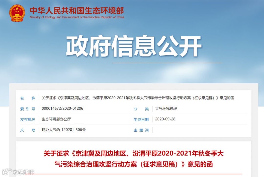 近日,生态环境部发布了《京津冀及周边地区、汾渭平原2020-2021年秋冬季大气污染综合治理攻坚行动方案(征求意见稿)》, 也就是大家所说的“停工令”。