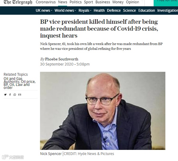 近期一则新闻,令广化君深刻感受到什么叫“成年人的绝望”。就在9月30日,英国石油公司的前副总裁在被解雇一周后自杀身亡!消息一出,瞬间引起了其他巨头企业的关注。