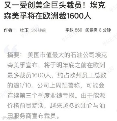 ▶▶▶埃克森美孚:裁员1600人