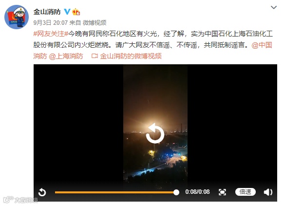 昨晚上海金山石化地区火光冲天,网友:听到巨响还伴有震动!真相是→