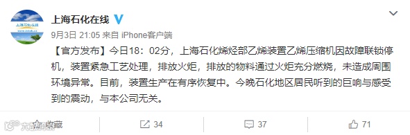 导读:昨晚(9月3日)有网友爆料称上海金山石化地区发出两次巨响声还伴有火光新民晚报“上海时刻”出品网友们纷纷担心起
